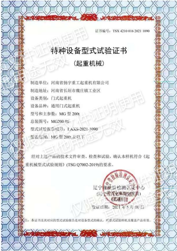 特種設(shè)備型式試驗(yàn)證書